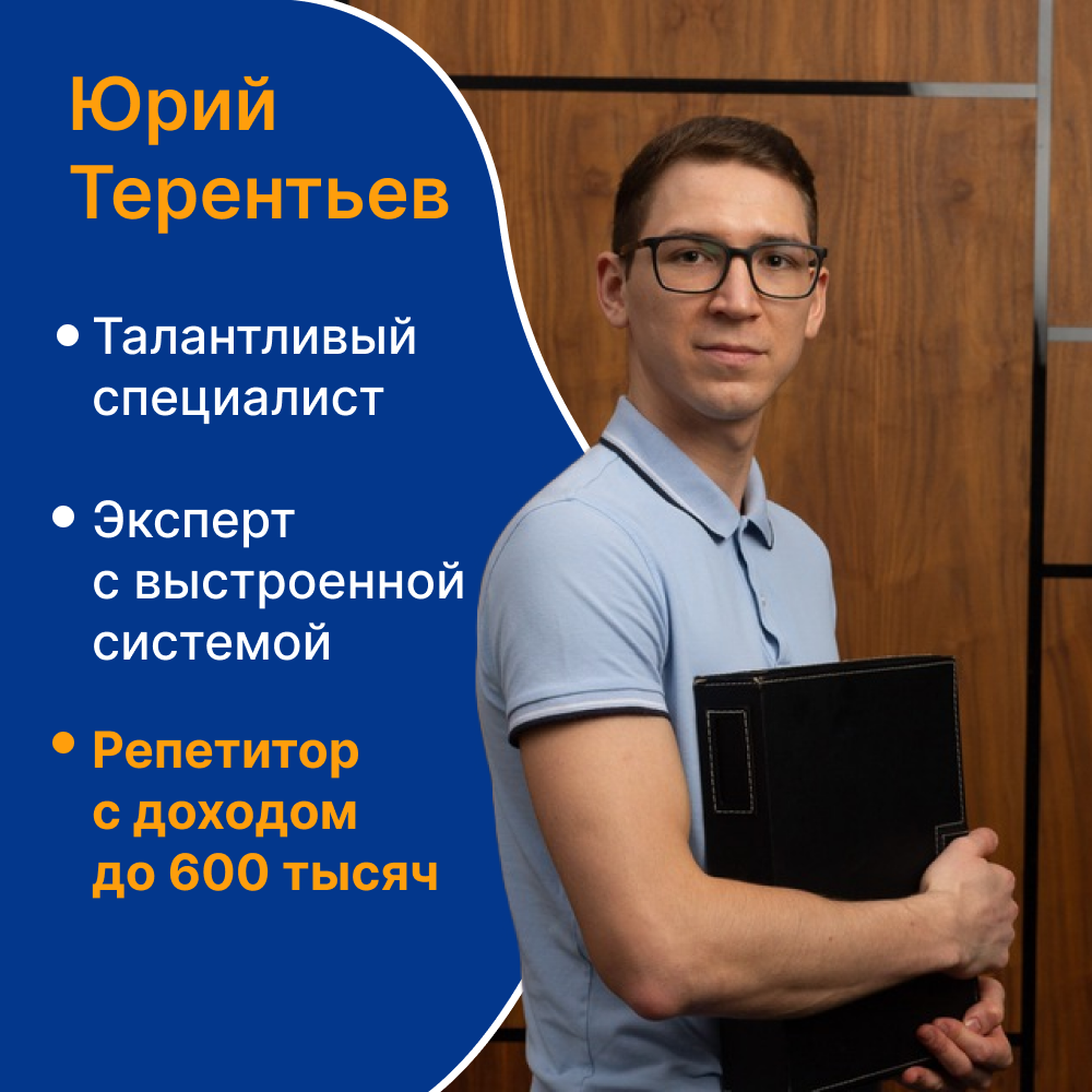 Юрий Терентьев — молодой целеустремлённый репетитор по физике. Начинал с дохода 80 тысяч и за 9 месяцев обучения у Юрия Спивака стал зарабатывать более 300 тысяч рублей.